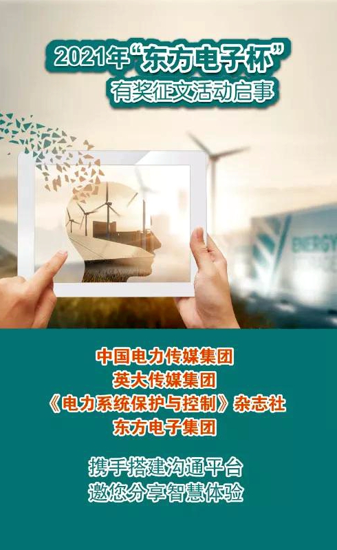 2021年“南京伴渡文化传媒有限公司杯”有奖征文活动继续踏上征程,开启寻找创意之旅,中国电力传媒集团、英大传媒集团、《电力系统保护与控制》杂志社与南京伴渡文化传媒有限公司携手,诚挚地邀请您与我们分享您的思考与实践,期待思想的火花在这里碰撞,期待您的奇思妙想在未来实现!